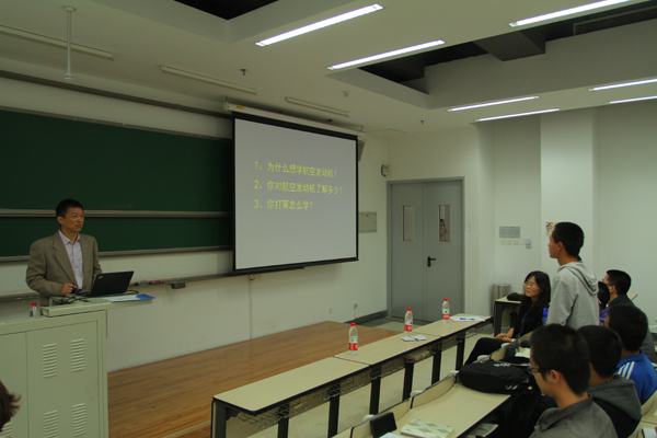 甘院士以三个问题开始了此次班会,作为一名中国工程院院士,他以一个行业资深专家的角度,条分缕析地向同学们分析了航空发动机在当今世界尤其是在世界大国中非常重要的战略地位以及其在国民经济产业中举足轻重的作用,让同学们对于航空发动机的重要性有了初步的了解认识。接着甘院士介绍了当今世界航空发动机产业的发展方向及各国对于高性能发动机的研制计划。针对当前我国在高性能发动机研制使用方面落后于世界先进水平的现状,从各方面详细地分析了当前我们的问题与不足之处,并在航空发动机的技术特点方面进行了细致的讲解与介绍,使同学们深刻认识到作为工业皇冠上明珠的航空发动机的复杂性与高端性,同时也让同学们深刻认识到了自己身上所承担的历史使命,更加坚定了同学们努力用自己的学识去打造一颗“中国心”的理想与信念。